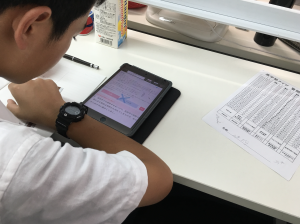 生徒達はタブレットを中心に学習する。出題や答え合わせなど、紙ベースや手作業で行っていた作業が一気に短縮された。