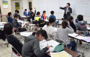 4日間の講座で講師を務めたのは、青森県八戸市の志学塾を経営する畑山篤塾長だ。畑山塾長は、小中学校の学習や生活の違いを子供たちに説明したほか、数学と英語の導入部分を解説し、志学塾で実践されている一斉個別方式の「OK!学習法」による自律学習に取り組んだ。