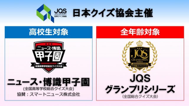 日本クイズ協会(齊藤 喜徳 代表理事)は、クイズの普及・啓発と地位向上に向けて、高校生を対象にした『ニュース・博識甲子園(全国高等学校総合クイズ大会)』と、全年齢を対象とした『JQSグランプリシリーズ(全国総合クイズ大会)』の2つの大会を創設した。予選会は7月から開催する。