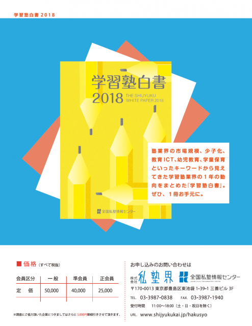 2019年1月10日学習塾白書の最新刊である「学習塾白書2018」は1月17日(木)より順次発送させていただきます。
