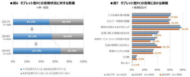 一方で、ICT導入のメリットであるペーパーレス化やデータ活用などによって、教員の教務を効率化する、授業内容をより深化するといった、既存課題の改善においても、その利用意義が見出されているようだ。
