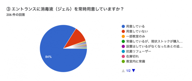 しかし、「準備を始めたところ」といった回答を合わせると、約4割が何かしらの対策を講じていると考えられる。集団授業や生徒の人数が多いところでは、対策が難しいという回答もあった。
