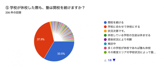 - ・塾の教場が感染を拡大する恐れがある場合、速やかに感染拡大防止の最善手を講ずるべきだと考えている。