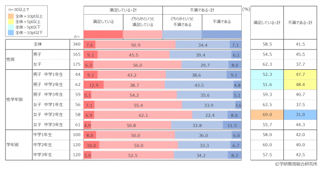 新型コロナウイルス感染拡大防止のための休校期間中に行ったオンライン学習についての満足度を尋ねた結果、約6割の生徒が「満足している」と回答した。