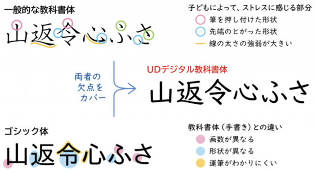 「UDデジタル教科書体」はそれらの書体の欠点をカバーした教科書体。