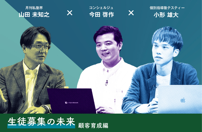 コンシェルジュ SALES OPS MANAGER 今田 啓作 氏、個別指導塾 テスティー 経営企画室 統括マネージャー 小形 雄大 氏、私塾界 編集長 山田 未知之の3名でお送りします、Day2 第1部「生徒募集の未来 顧客育成編」。