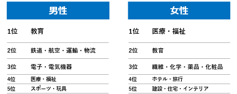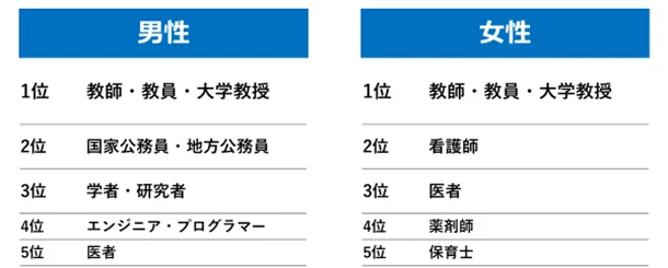 ・「教師・教員・大学教授」が男女問わず人気。女子は医療関係が上位にランクインする傾向が強かった。