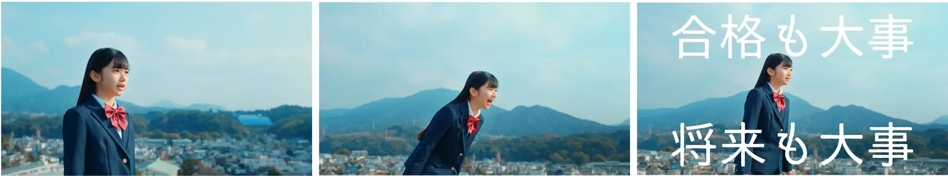 今回の新CMは、学校の屋上に立つ生徒が「私たちの将来、イメージできますか?」と問いかけるシーンからはじまる。「仕事はどうなっていますか?」「環境はどう変化していますか?」と続けて投げかけたあと、「どうなってますかー!」福岡の街にめがけて大声で叫ぶ。