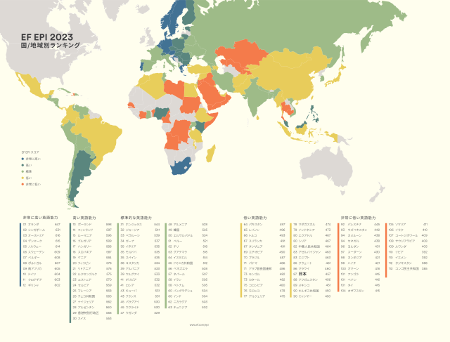 EF EPI英語能力指数<2023年版>の主なポイントは以下の通り
